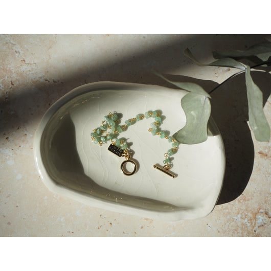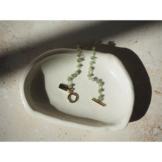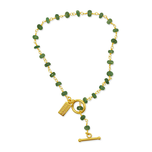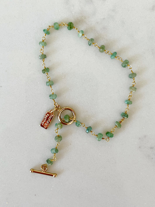 Delicate emerald faceted stone wire wrapped chain with a solid 14k gold filled T-bar fastening.