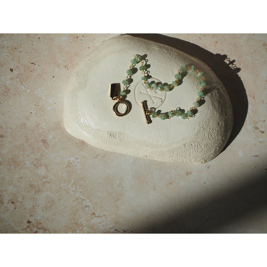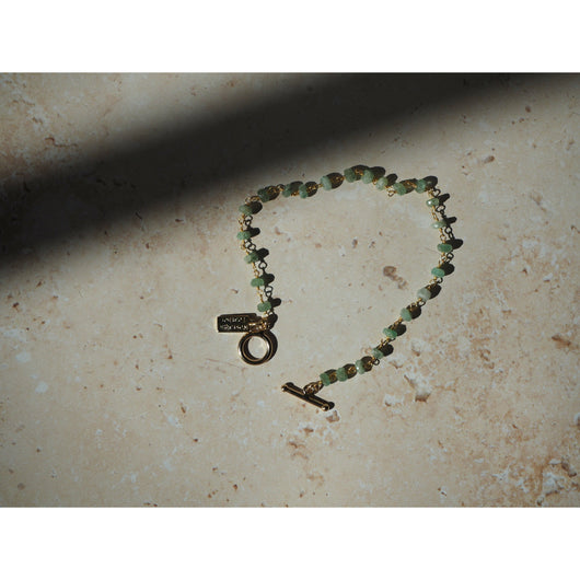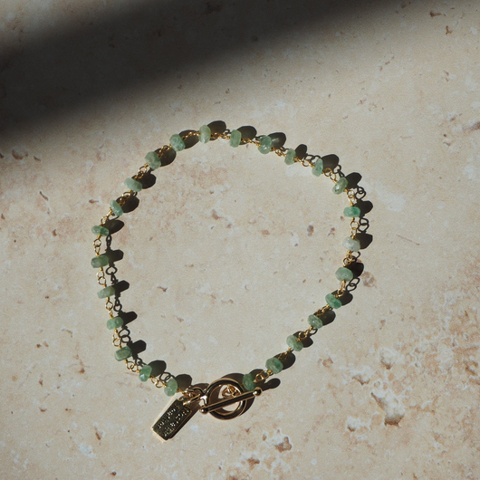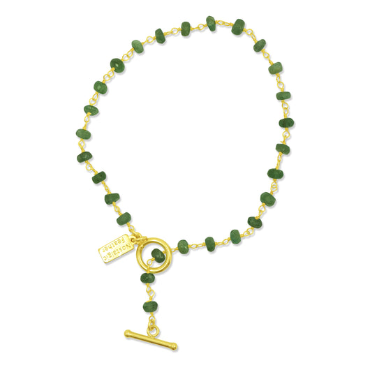 - Gold plated on sterling silver wire chain with emerald faceted stones