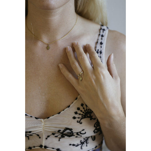 • Dainty vintage brass diamond drop on a delicate 14k gold filled rope chain. Stunning and simplistic on it's own or layered with our New Moon Necklace